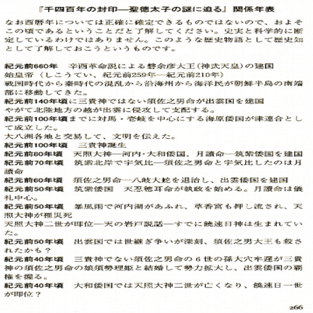 六世の孫だったら一世代25歳平均として150年は離れていることになります。だったら須世理姫の父の須佐之男命と大国主命のご先祖の須佐之男命は別人だったと考えるしかないのです。『千四百年の封印 聖徳太子の謎に迫る』の年表を見て下さい。